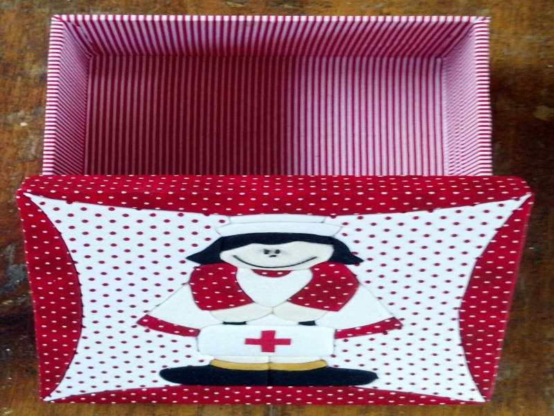 Caixa quadrada enfermeira de tecido em mdf com Patchwork embutido