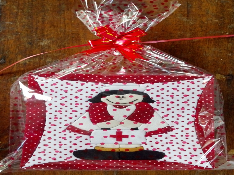 Caixa quadrada Enfermeira em tons de vermelho e branco. Somente por encomenda. KK Acessórios de Moda e Artesanato