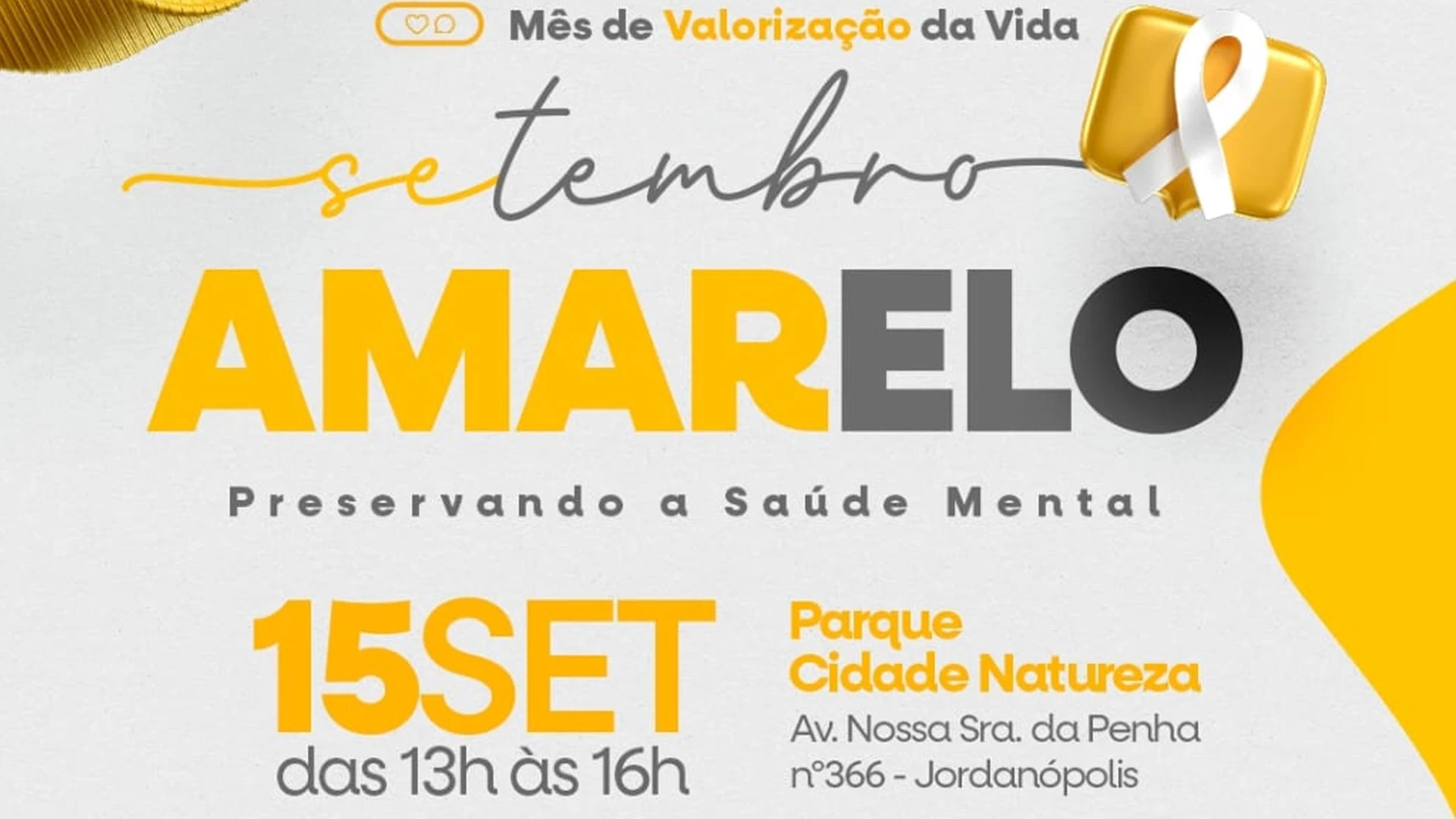 A Prefeitura de Arujá, por meio da Diretoria da Mulher, vinculada à Secretaria da Mulher, Pessoa com Deficiência e Igualdade Racial, em parceria com a Secretaria de Assistência Social e a Casa Rosa & Azul, realiza na próxima segunda-feira (15), das 13h às 16h, no Parque Cidade Natureza (Av. Nossa Senhora da Penha, 366 – Jordanópolis), uma programação especial em alusão ao Setembro Amarelo – mês de valorização da vida e preservação da saúde mental.