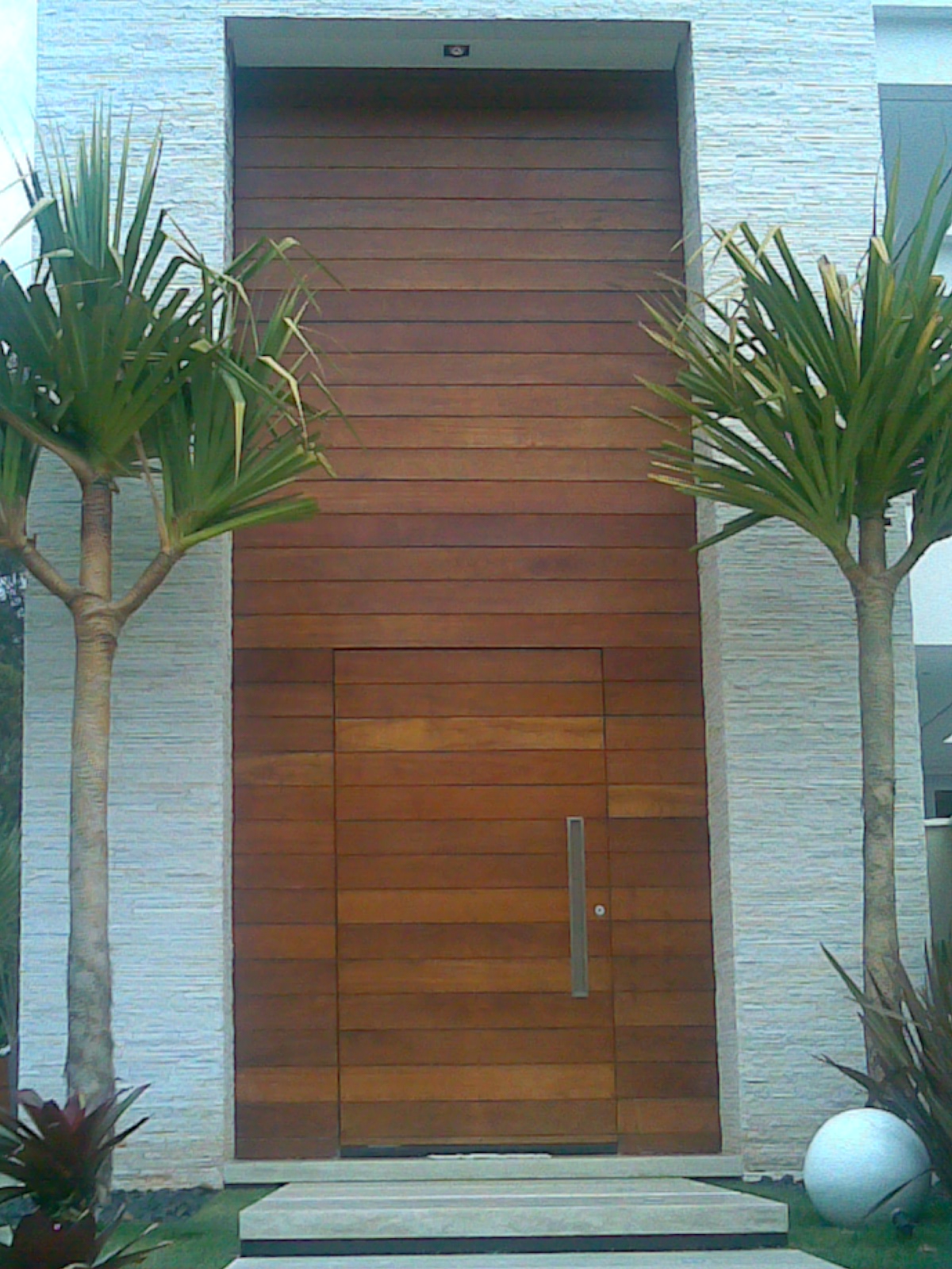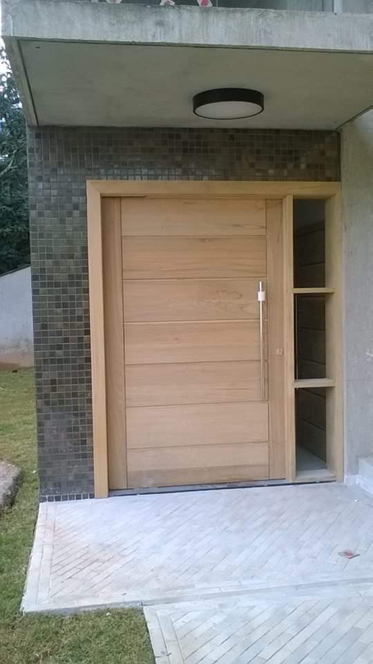 Portas Pivotantes: Design imponente e moderno, ideais para entradas principais. Fabricadas em madeira nobre com excelente estrutura.