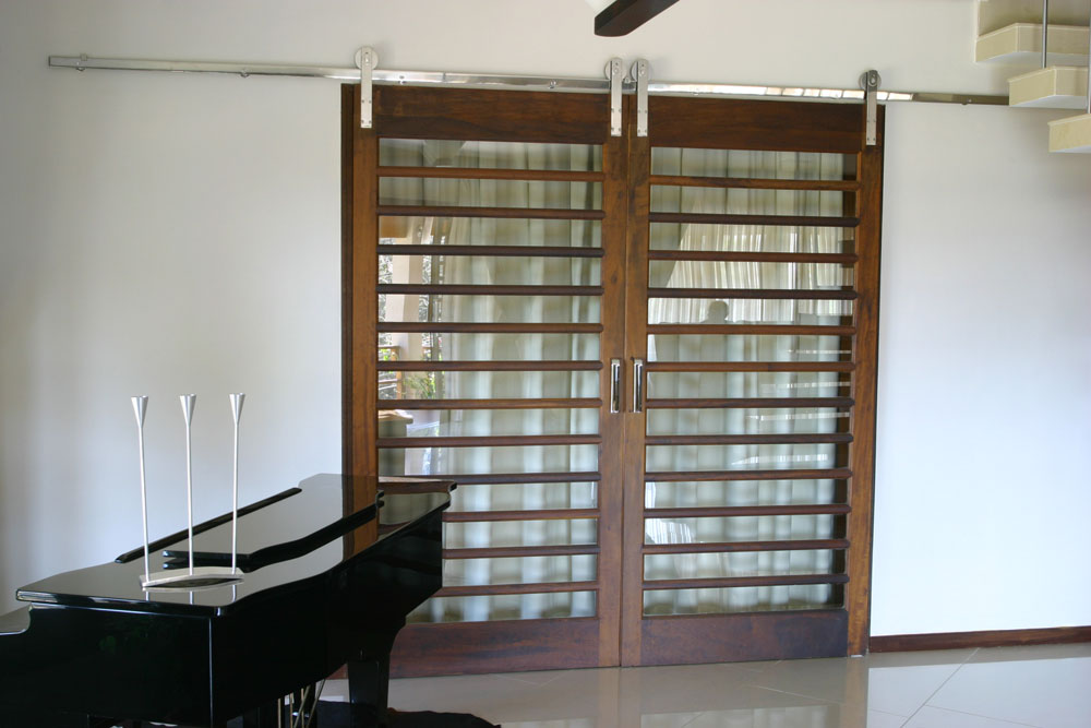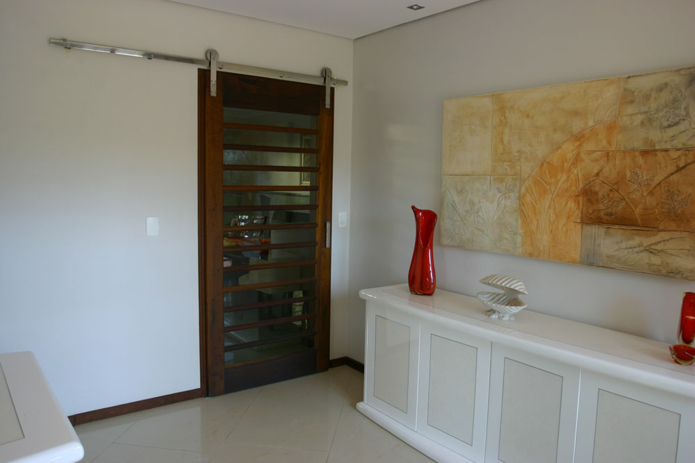 Portas sob encomenda em madeira e de correr. Trilhos em aço inox.