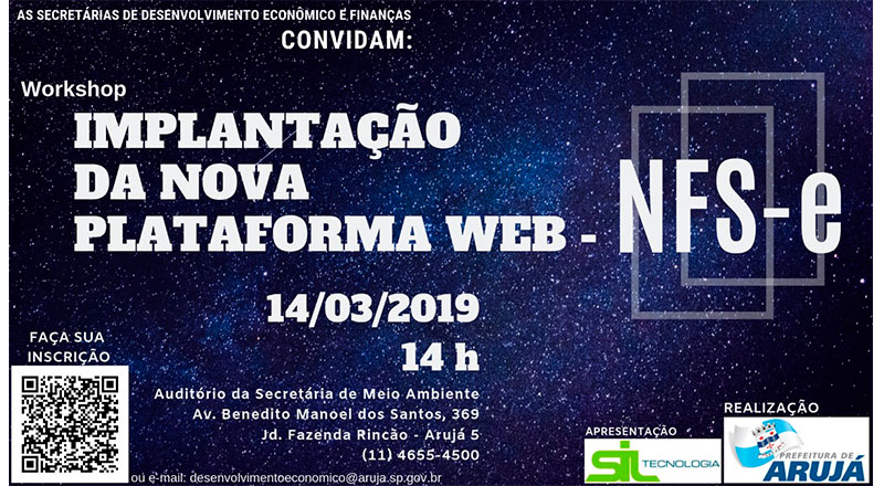 Será nesta quinta-feira (14/03), às 14 horas, o workshop sobre a nova plataforma de emissão de nota fiscal eletrônica (NFS-e) e a modernização do sistema tributário da Prefeitura de Arujá. A presença de contadores e prestadores de serviço é fundamental, uma vez que as novidades devem ser implantadas até o final deste mês.