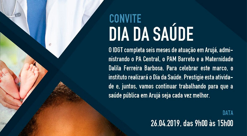 Atendimento clínico, pediátrico e ginecológico, palestra sobre odontologia, orientações de nutricionistas, testes de dextro (nível de açúcar no sangue) e aferição da pressão arterial serão os serviços ofertados no Dia da Saúde, que o Instituto de Desenvolvimento de Gestão, Tecnologia e Pesquisa em Saúde e Assistência Social (IDGT) realiza sexta-feira (26/04).