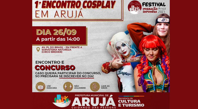 A Prefeitura de Arujá realizará o 1º Encontro de Cosplay na cidade.