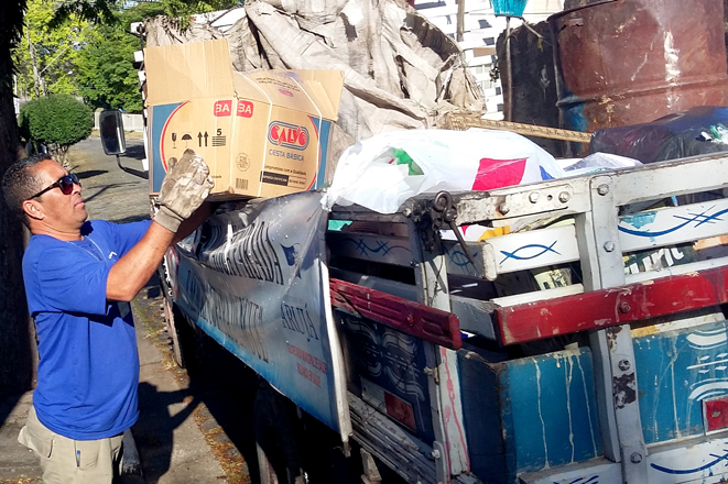 No último dia 1º, o serviço percorreu 36 quilômetros entre o Jd. Rincão, Jd. Ângelo e Albino Neves, coletando 400 quilos de objetos, dentre eles pneus, vasos sanitários, pias, lavatórios, isopores, latas, baldes, vidros, garrafas, etc.